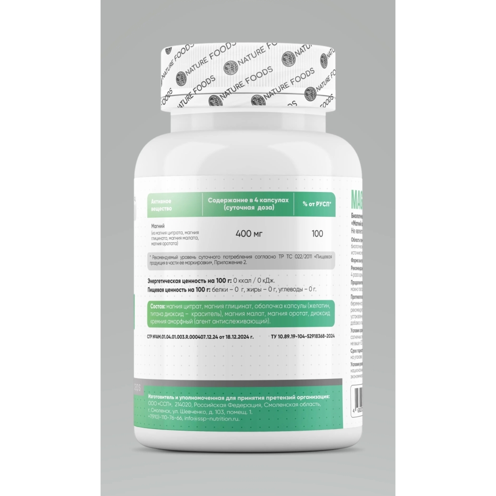 Nature Foods Magnesium Complex — это эффективный комплекс трёх форм магния для полноценной поддержки нервной системы, сердечно-сосудистого здоровья и качественного сна. Магний в разных формах усваивается лучше и действует шире, обеспечивая максимальную эффективность.