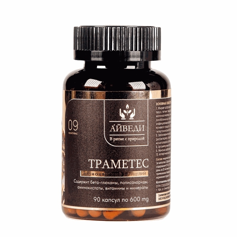 Специальный препарат Айведи Траметес разноцветный мицелий 600 мг 90 капсул